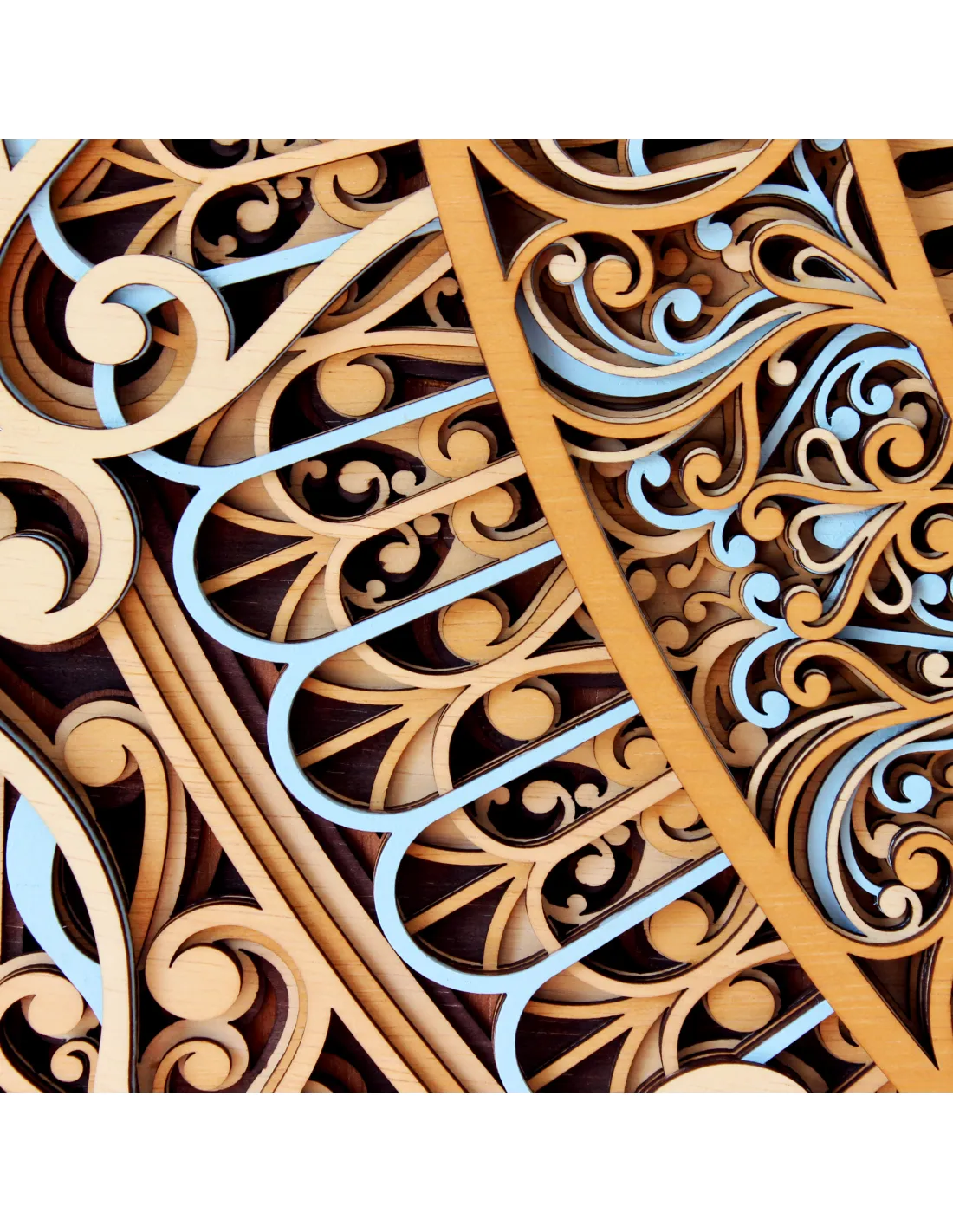 Technique: Precise laser cutting, multilayer manual gluing