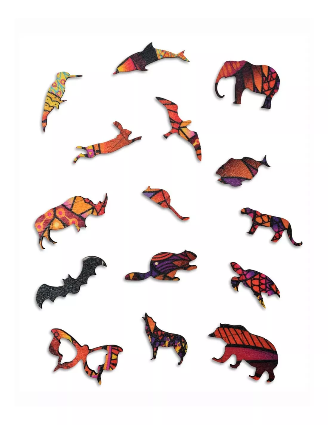 All pieces are unique, you won’t find two the same elements. Thanks that, playing with them requires commitment and patience, but on the other hand - it will bring you a lot of fun and satisfaction. Among all the elements you will surely recognize many shapes of animals.