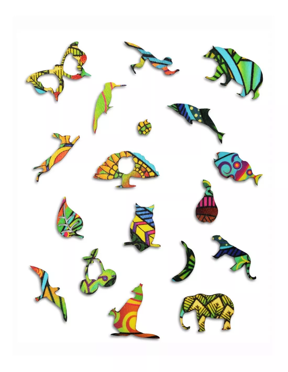 All pieces are unique, you won’t find two the same elements. Thanks that, playing with them requires commitment and patience, but on the other hand - it will bring you a lot of fun and satisfaction. Among all the elements you will surely recognize many shapes of animals.