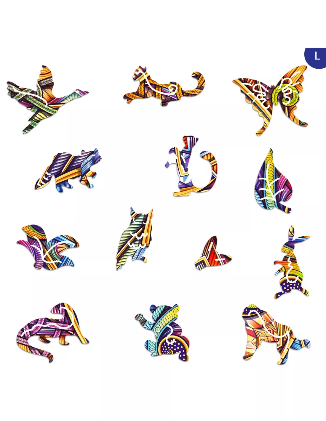 Wszystkie elementy są unikalne, nie znajdziesz dwóch takich samych. Dzięki temu zabawa nimi wymaga zaangażowania i cierpliwości, jednak z drugiej strony – przyniesie Ci mnóstwo radości i satysfakcji. Wśród wszystkich elementów na pewno rozpoznasz wiele charakterystycznych kształtów zwierząt.