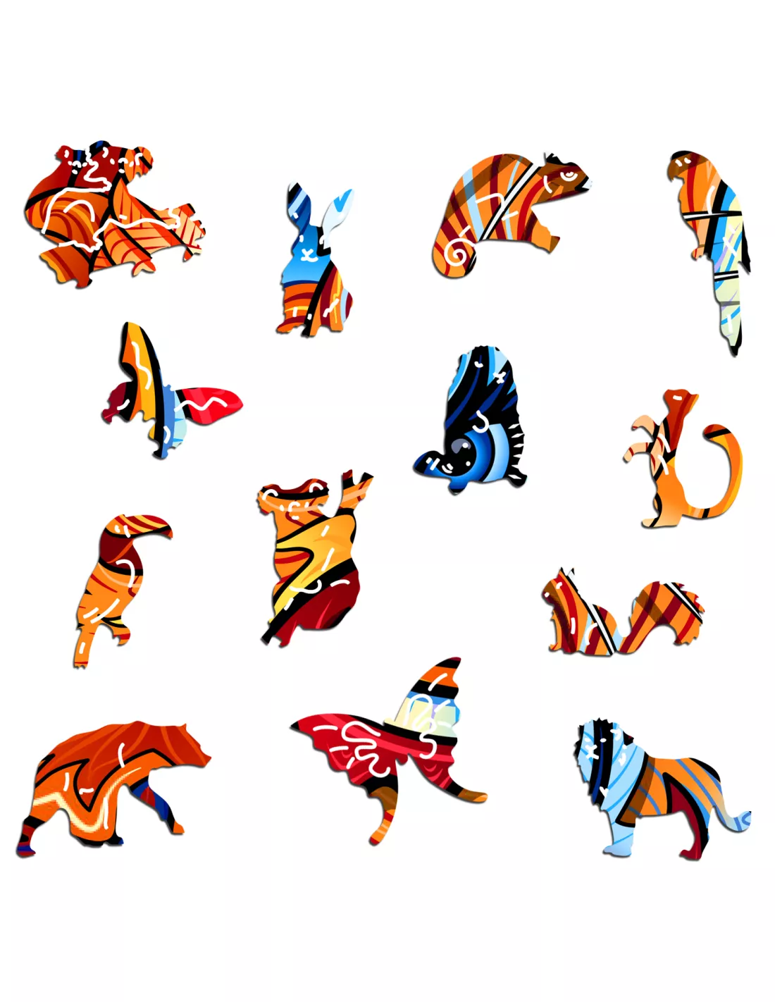 Wszystkie elementy są unikalne, nie znajdziesz dwóch takich samych. Dzięki temu zabawa nimi wymaga zaangażowania i cierpliwości, jednak z drugiej strony – przyniesie Ci mnóstwo radości i satysfakcji. Wśród wszystkich elementów na pewno rozpoznasz wiele charakterystycznych kształtów zwierząt.