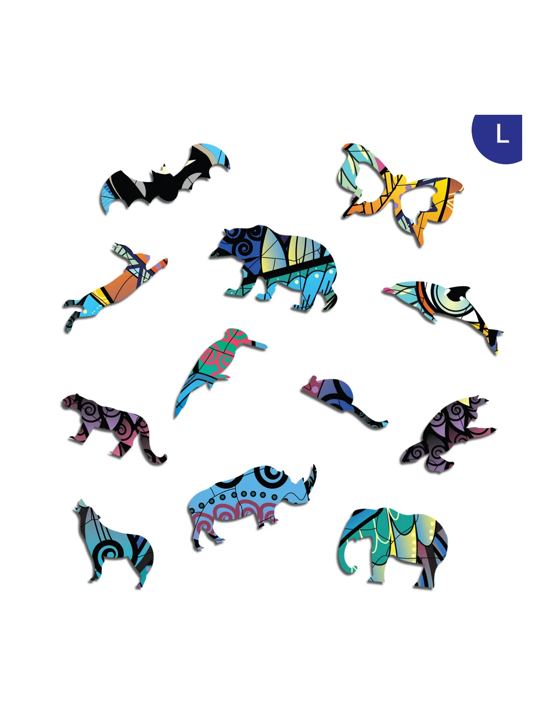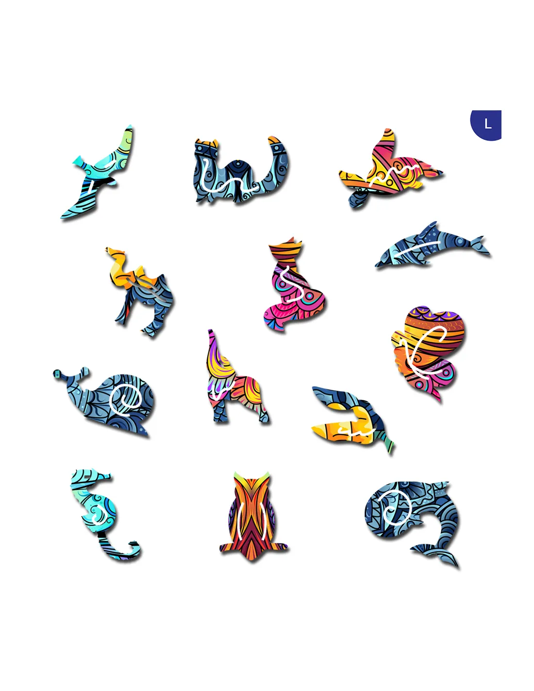 Wszystkie elementy są unikalne, nie znajdziesz dwóch takich samych. Dzięki temu zabawa nimi wymaga zaangażowania i cierpliwości, jednak z drugiej strony – przyniesie Ci mnóstwo radości i satysfakcji. Wśród wszystkich elementów na pewno rozpoznasz wiele charakterystycznych kształtów zwierząt.